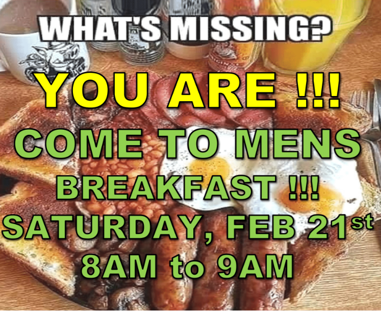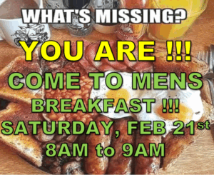 All men are invited for this time of fellowship and encouragement. We will eat right at 8 am and finish our Bible Study by 9 am. Come and enjoy the food and fellowship!